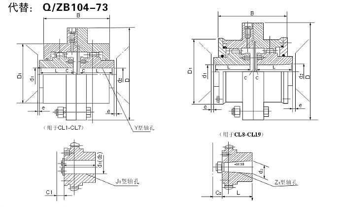 CL型齒式聯軸器的參數及主要尺寸:(JB/ZQ 4218-86) mm
