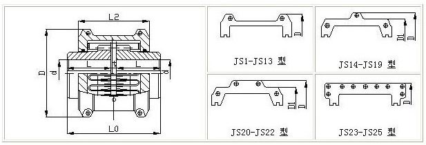 JS型蛇型彈簧聯軸器的參數及主要尺寸:(JB/T 8869-2000)mm